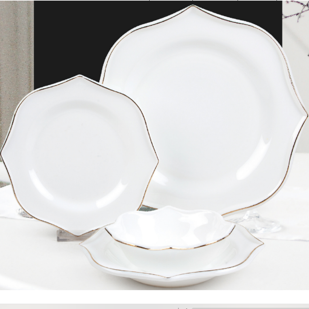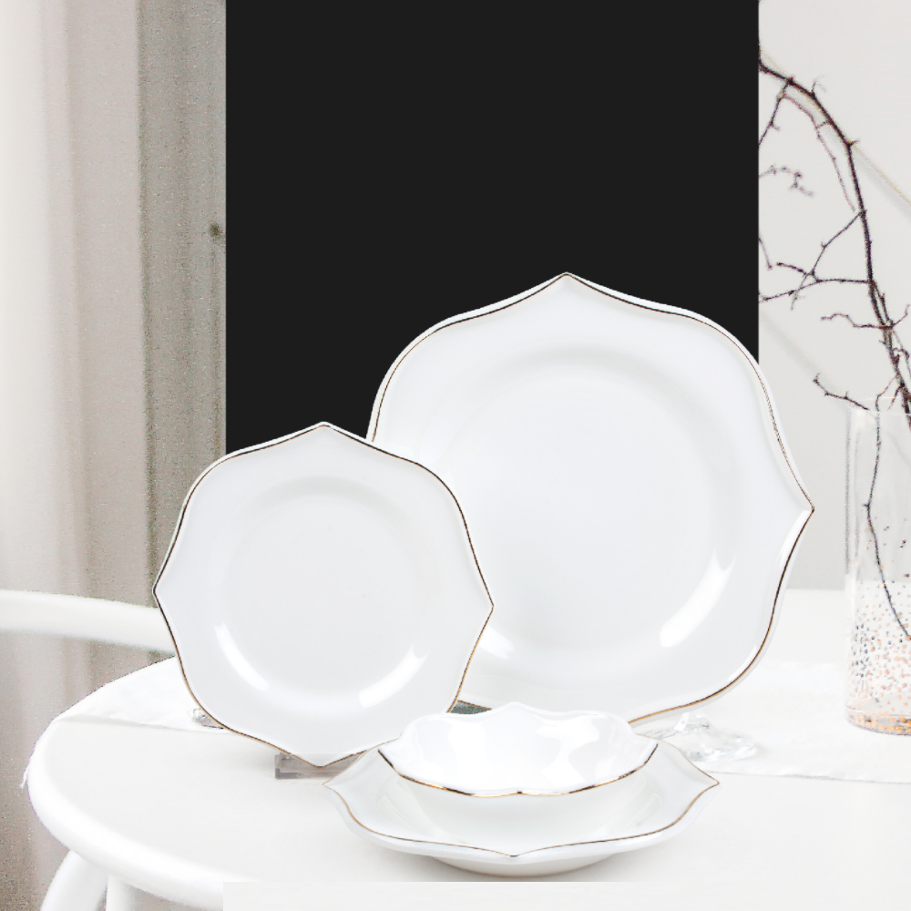 BST-OPS002 : 24PCS SET DINNERWARE (OPAL GLASS WHITE WITH GOLD EDGE)
