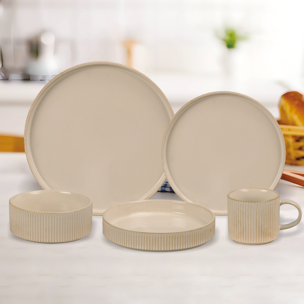 BST-GH1211 : 30PCS SET DINNERWARE (STONE WARE WITH CREAM COLOR REACTIVE GLAZE)