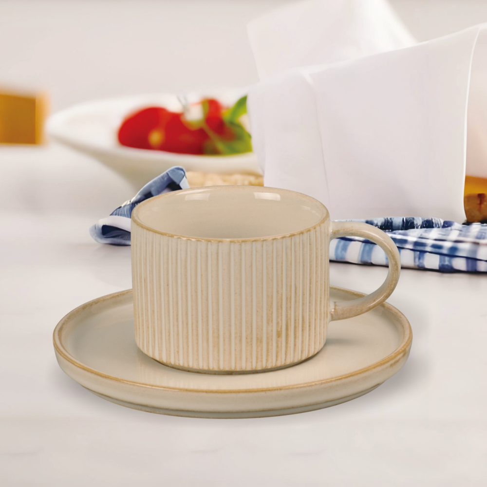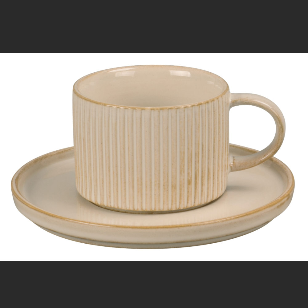 BST-GH1212 : 12PCS SET CUP & SAUCER (STONE WARE WITH CREAM COLOR REACTIVE GLAZE)