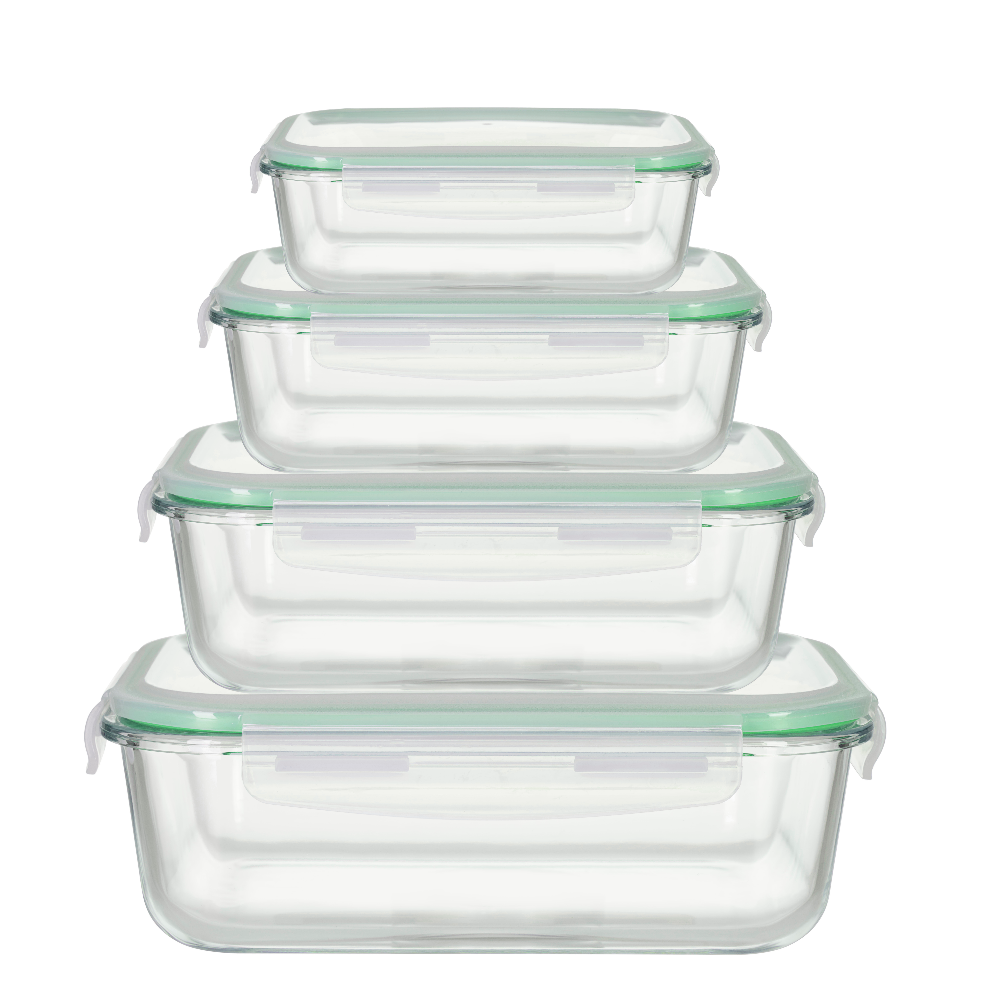 BST-GH1103 : Set 4PCS RECTANGLE lunchbox food containers - 370ML / 640ML / 1040ML / 1520ML